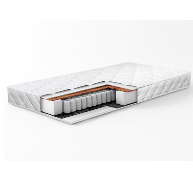 Анатомический матрас. Жесткость средняя/ниже средней. Высота 19 см. Max нагрузка - 130 кг. Независимый пружинный блок. Состав матраса: 1. Система комфортности - стрейчевый жаккард Lux, стеганый на синтепоне и спанбонде 2. Анатомическая пена Orto Flex 10 мм 3. Кокосовое полотно 4. Независимый пружинный блок TFK высотой 140 мм 5. Термовойлок 6. Анатомическая пена Orto Flex 10 мм 7. Усиление по периметру Матрас адаптируется под индивидуальные особенности тела и повторяет каждый изгиб для равномерного распределения веса по поверхности и создания максимального комфорта для спящего.